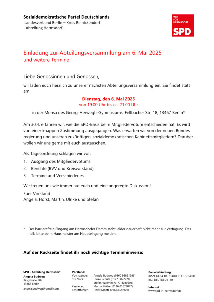 wir laden euch herzlich zu unserer nächsten Abteilungsversammlung ein. Sie findet statt am